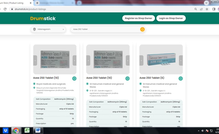 www.drumstick.in helps people find availability of medicine in local Phramacies